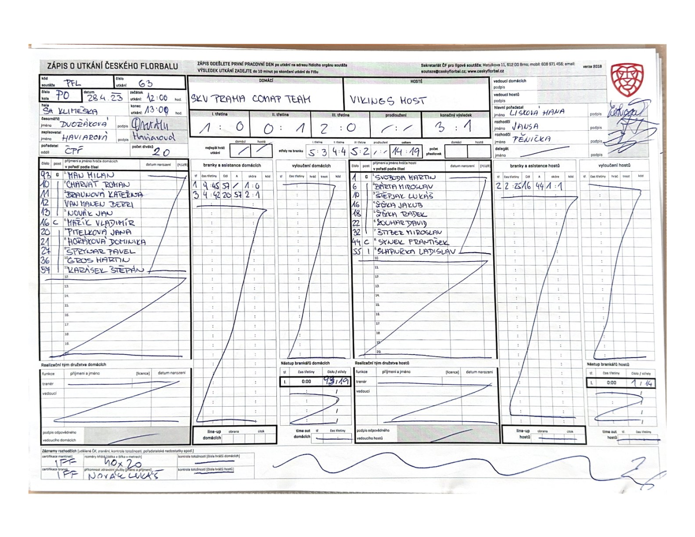 | 2:1 | 3 | 11:19 | odvolán brankář hostů | |||||