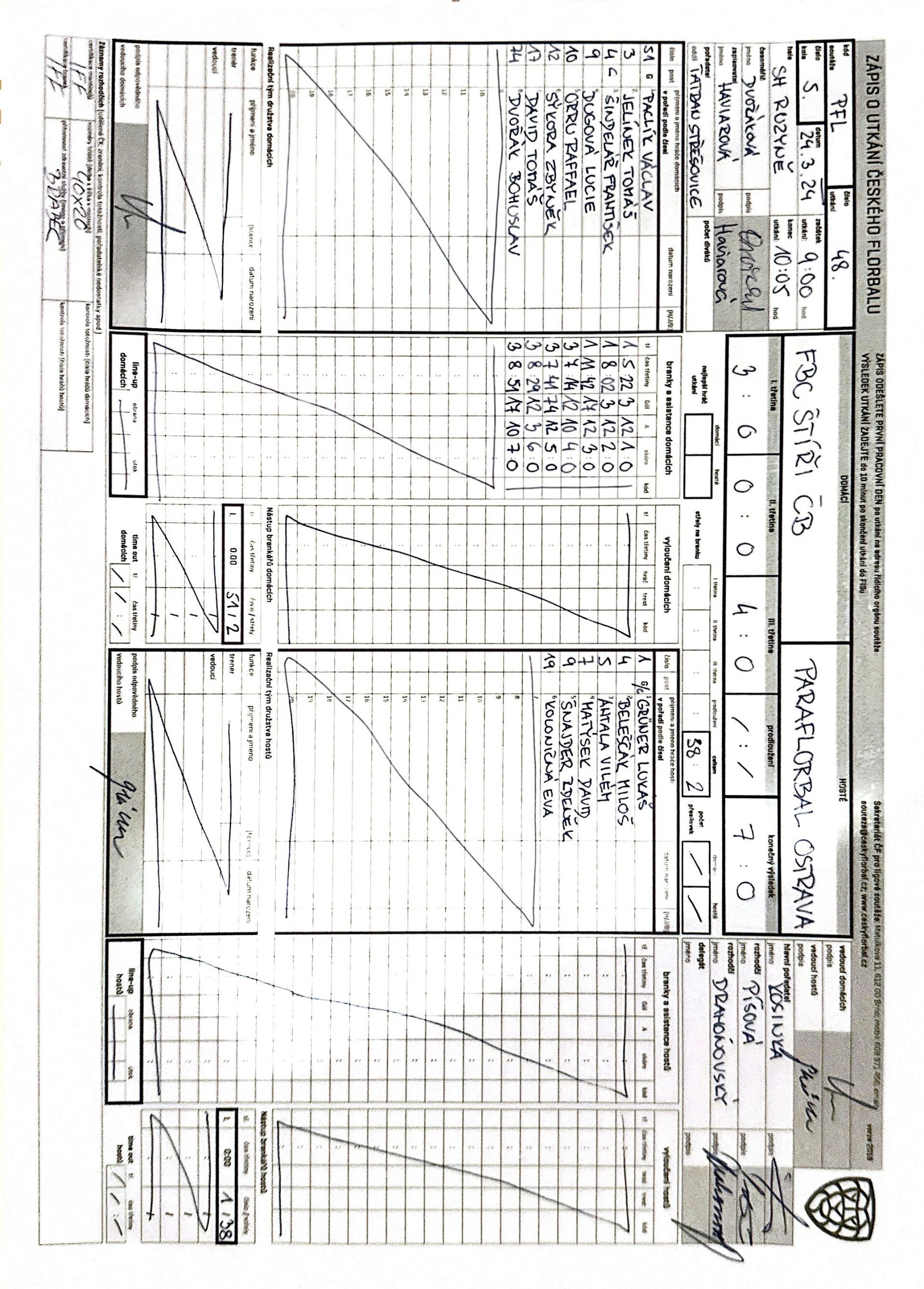 | 0:0 | 1 | 00:00 | Vítejte u prvního nedělního zápasu 5. kola paraflorbalové ligy pořádaného Tatranem Střešovice. Proti sobě nastupují FBC Štíři České Budějovice x PARAFLORBAL Ostrava. | |||||
