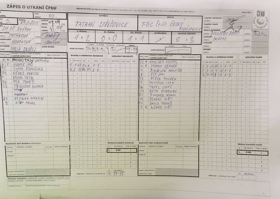 | Tým | Skóre | Část | Čas | Gól | Asistence | Trest | Název trestu | Délka trestu |