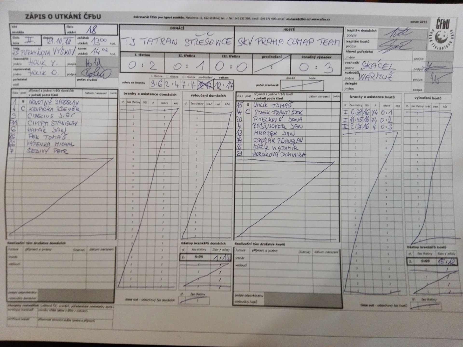 | Tým | Skóre | Část | Čas | Gól | Asistence | Trest | Název trestu | Délka trestu |