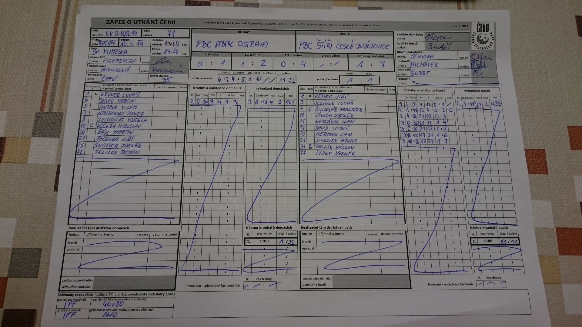 | 0:1 | 1 | 11:00 | Probíhá poslední minuta první třetiny. | |||||